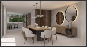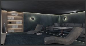 Uno de los puntos culminantes de esta residencia es el espectacular Home Cinema, diseñado para ofrecer una experiencia audiovisual sin igual, reflejando así el elevado estándar de calidad y confort de la vivienda. Para lograr esto, se seleccionaron componentes de alta fidelidad de marcas como Bowers and Wilkins y JVC, garantizando así la mejor experiencia sonora y visual posible.